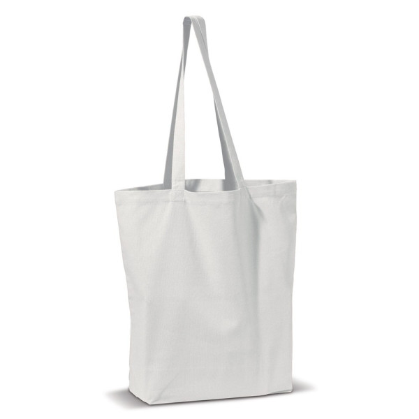 Rechteckige Canvas-Tasche aus Baumwolle in hoher Qualität. Lange Griffe.