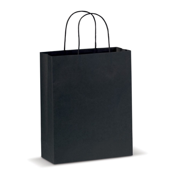 Mittelgroße matte Papiertragetasche mit Griffen, die aus gedrehtem Papier hergestellt sind. Die... mehr