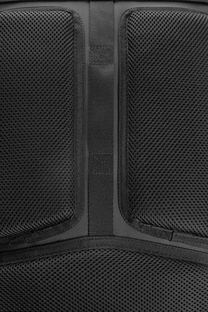 dynamischer Rolltop-Rucksack; Reißverschluss-Hauptfach mit Steckverschluss; große Reißverschluss-Vortasche; zwei seitliche Einsteckfächer; Fixiergurte; dekorativer Reflexeinsatz auf der Front; innen gepolstertes Einsteckfach mit Klettsicherung; verstecktes Reißverschluss-Fach rückseitig; aufwändig gepolstertes Tragesystem mit individuell einstellbarem Brustgurt; Hand- sowie Tragegriff