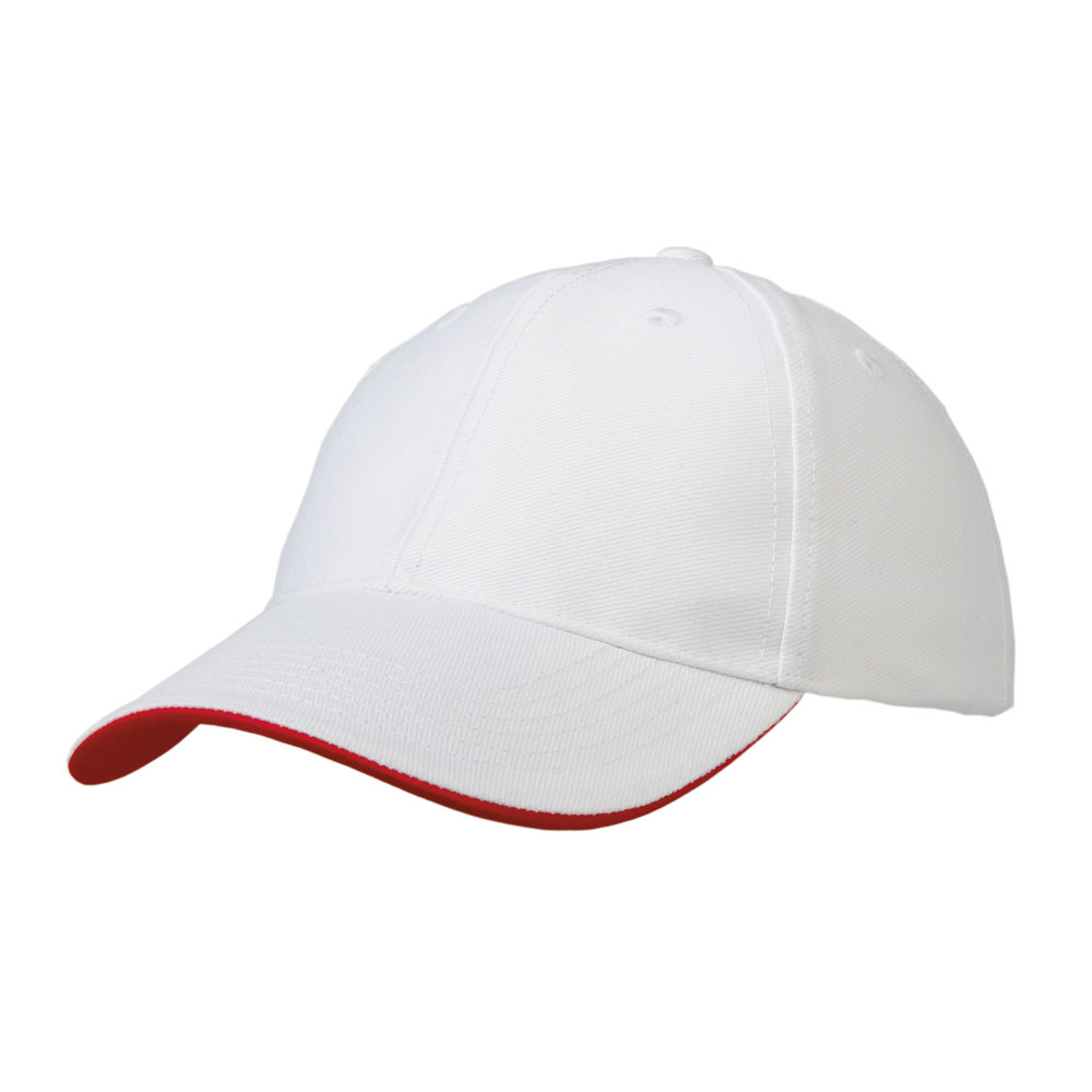 6 panel strap Cap mit Frontfütterung, Kontraststreifen auf Verschluss. Medium profile. Metall buckle Verschluss mit Öse. Ausgeführt in cotton, heavy twill