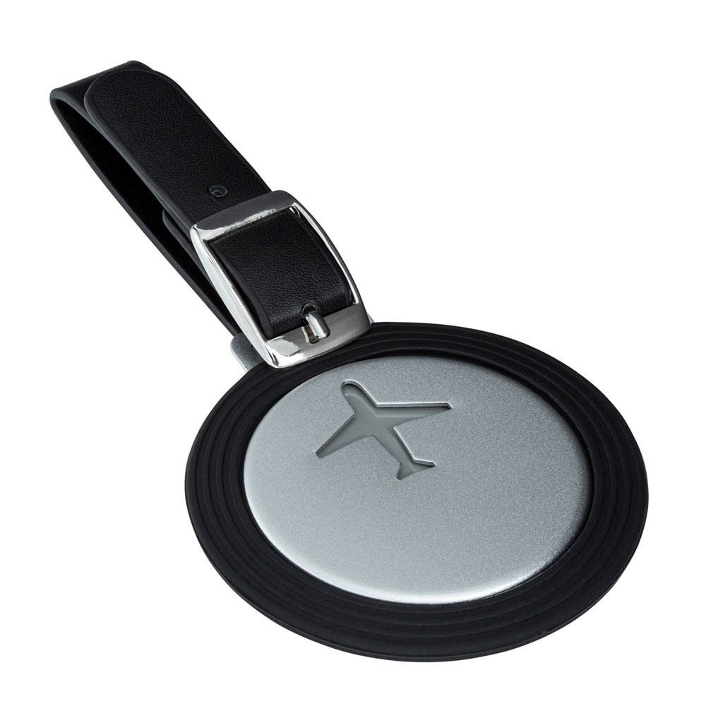 Diese REFLECTS® Eigenentwicklung ist ein unverzichtbarer Begleiter auf jeder Reise. Der Kofferanhänger zeichnet sich durch modernes Design und trendige Farben aus, von dezentem Schwarz-Schwarz bis zu leuchtendem Rot-Silber. Die Aluminiumplatte hat ein ausgestanztes Flugzeug-Motiv auf der Vorderseite und liegt sicher im umschließenden Silikon. Zwischen der Silikonhülle und Aluminiumplatte befindet sich ein Papier-Inlay für Name, Adresse und Telefonnummer. Auf diese Weise bleiben die persönlichen Daten verdeckt. Das Band aus Kunstleder mit Metall-schnalle ermöglicht sicheres Befestigen des Anhängers an Koffer oder Rucksack.