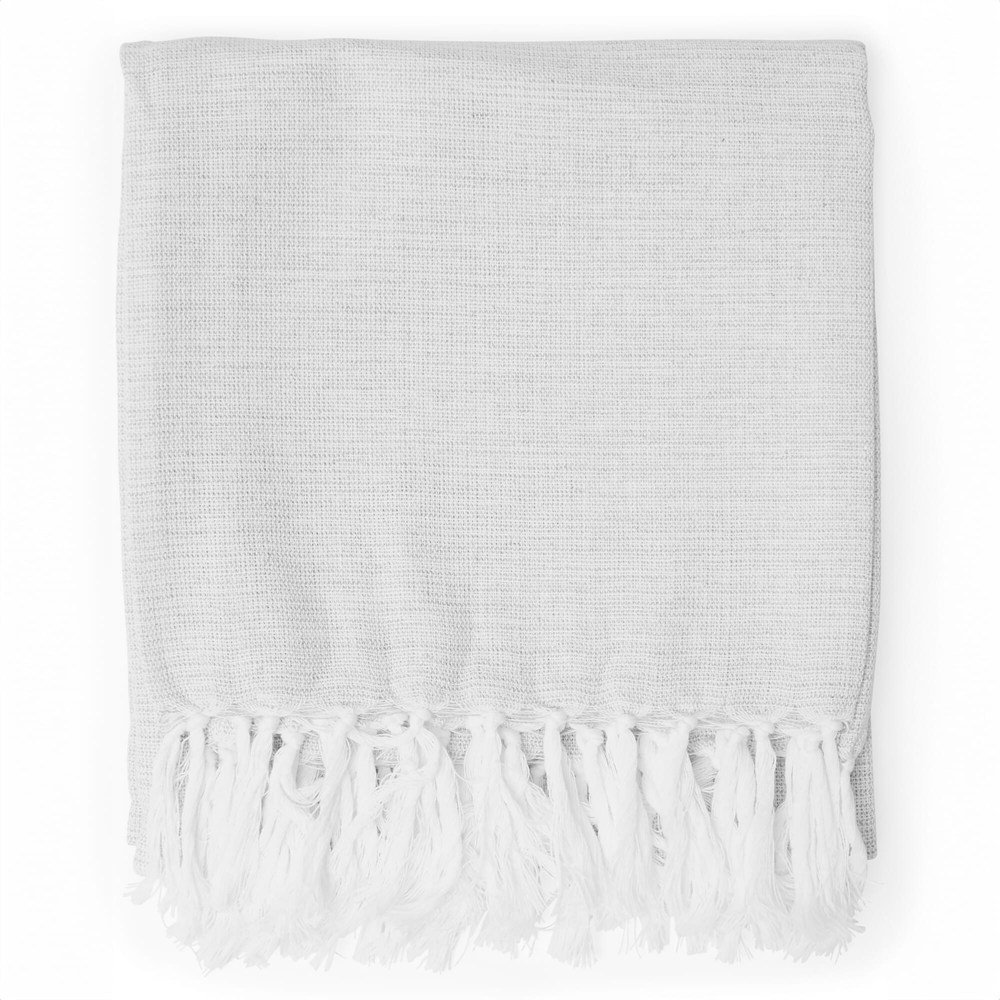 Ein hübsches Hamamtuch mit Fransen, hergestellt aus 70% recycelter Baumwolle. Die farbigen Fäden sind mit weißen gemischt, um einen gemischten Eindruck zu vermitteln.
