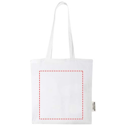 Die Tragetasche Madras aus 100 % GRS-zertifizierter recycelter Baumwolle ist die perfekte Tasche zum Verschenken bei Veranstaltungen, Konferenzen oder als Einkaufstasche für kleine Einkäufe. Die Baumwolldichte von 140 g/m² Baumwolle macht die Tasche robust, langlebig und geeignet, um schwere Gegenstände zu transportieren. Mit einer Tragegriffhöhe von 30cm (Tragegrifflänge 60cm) lässt sich diese Tasche gut tragen. Die für diese Tragetasche verfügbaren Druckverfahren sind ebenfalls GRS-zertifiziert, so dass die gesamte Lieferkette transparent und zertifiziert ist. Hergestellt in Indien. Beständigkeit bis zu 5kg.