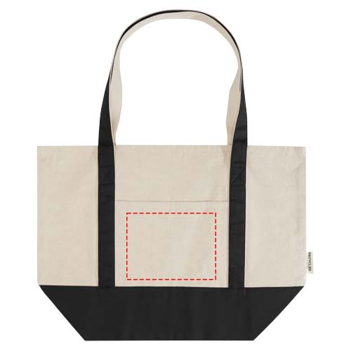 Die Sam Tragetasche aus 100 % GRS-zertifizierter Recyclingbaumwolle ist die perfekte Tasche für ein Picknick oder den Einkauf. Das Material besteht aus 320 g/m² Baumwolle. Die Tasche ist strapazierfähig und langlebig und die doppelten Tragegriffe ermöglichen den Transport von schweren Gegenständen im Hauptfach. Die für diese Tragetasche verfügbaren Druckverfahren sind ebenfalls GRS-zertifiziert, sodass die gesamte Lieferkette transparent und zertifiziert ist. Grifflänge im Hängezustand: 30 cm. Widerstand bis zu 10 kg Gewicht. Fassungsvermögen: 15 Liter. Hergestellt in Indien.