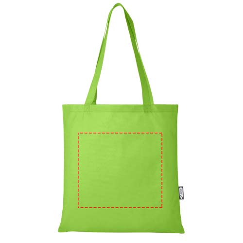 Die Zeus GRS-recycelte große Tragetasche aus strapazierfähigem und reißfestem RPET ist eine perfekte und nachhaltigere Option für Messen oder Konferenzen. Ihr schlankes Design macht sie zu einem eleganten Modell, das sich für den Transport von leichten Gegenständen wie einem Notebook und einem Stift eignet. Die Griffe sind 29 cm lang, sodass die Tragetasche leicht über der Schulter getragen werden kann. Belastbarkeit bis zu 5 kg.