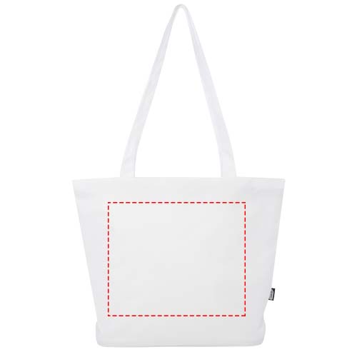 Die Panama GRS-recycelte Tragetasche mit Reißverschluss aus wasserabweisendem 600D RPET ist eine perfekte Mehrzwecktasche für den Besuch einer Veranstaltung, für den Strand oder für den Lebensmitteleinkauf. Sie verfügt über ein Hauptfach mit Reißverschluss und eine Innentasche mit Reißverschluss, die groß genug ist, um Ihr Telefon und andere wertvolle Gegenstände zu verstauen. Die Griffe sind 34 cm lang, sodass die Tasche leicht über der Schulter getragen werden kann. Belastbarkeit bis zu 10 kg. PVC frei.