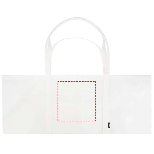 Die Jumbo Tragetasche aus GRS-zertifiziertem Recyclingmaterial besteht aus strapazierfähigem und reißfestem RPET-Non Woven und bietet mit bis zu 65 Litern ein extra großes Fassungsvermögen für vielfältige Aktivitäten wie den Großeinkauf oder einen Tag am Strand oder im Park. Mit verstärkten kurzen (24 cm) und langen (37 cm) Griffen für maximalen Tragekomfort. Bei Nichtgebrauch lässt sie sich leicht zusammenfalten und verstauen. Beständigkeit bis zu 15 kg.