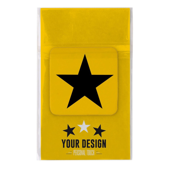 Mikrofaser-Mini-Display-Reiniger (35x35mm) zum reinigen von Displays. Nach dem Gebrauch einfach wieder auf die Rückseite des Gerätes kleben. Einzeln verpackt im Polybeutel mit individuell bedruckter Einlegekarte. Inkl. vollfarbigen All-Over-Druck und Einlegekarte.