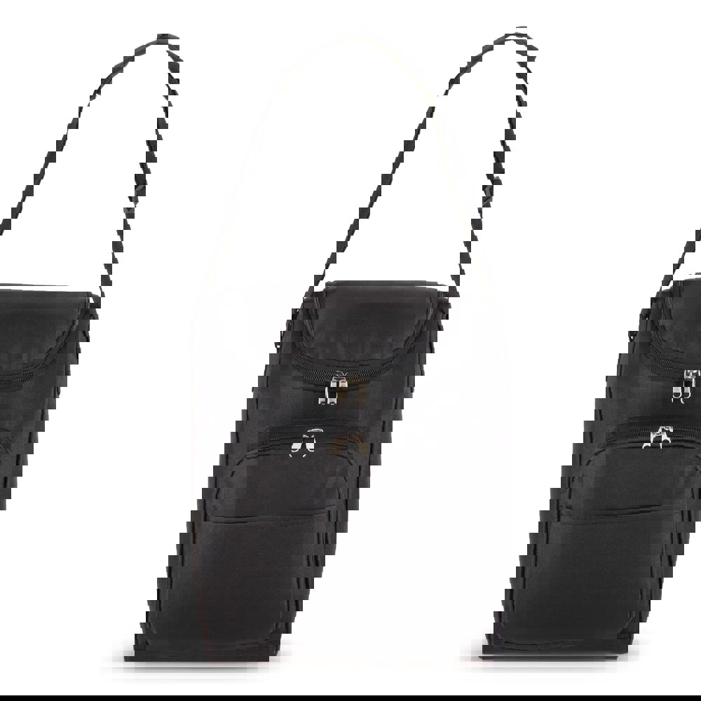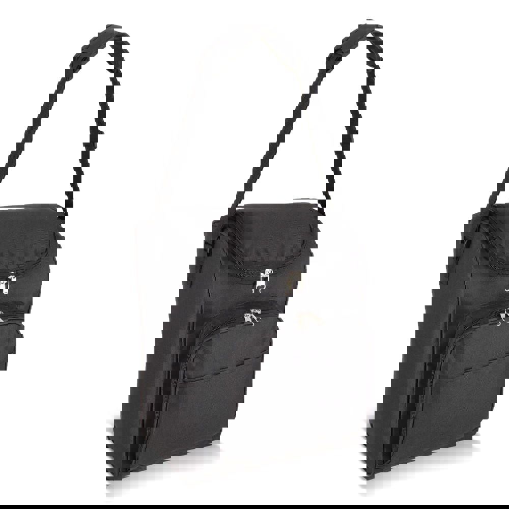 13-Liter-Kühltasche aus recyceltem PET 600D mit einer weiten Öffnung oben. Mit Aluminiumfolie gefüttert und einer Vordertasche mit Reißverschluss. Ideal für Getränkeflaschen, Picknicks und Einkäufe.