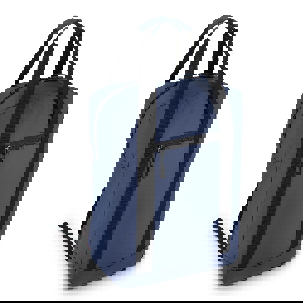 Beliebter Rucksack aus strapazierfähigem 600D recyceltem PET. Mit verstellbaren Schultergurten mit reflektierenden Streifen, gepolstertem Rücken, doppelten Tragegriffen oben und einer Fronttasche mit Reißverschluss. Mit gepolstertem Laptopfach für Laptops bis zu 15,6 Zoll.