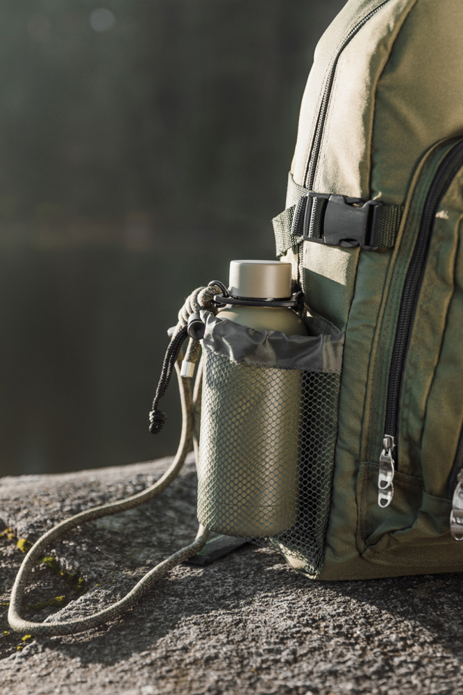 Diese Edelstahlflasche ist für jeden Trail geeignet und für einen aktiven Lebensstil konzipiert. Die doppelwandige Flasche hält Getränke bis zu 12 Stunden lang erfrischend kalt und bis zu 6 Stunden lang warm. Sie wird mit einem praktischen abnehmbaren & verstellbarem Schultergurt geliefert, der das Tragen mühelos macht, egal ob Sie in der Stadt unterwegs sind, bergauf wandern oder einen Tag voller Abenteuer erleben. Nicht spülmaschinen- oder mikrowellengeeignet, nur von Hand spülen. Fassungsvermögen 400ml. Zertifiziert durch RCS (Recycled Claim Standard). Die RCS-Zertifizierung garantiert, dass die gesamte Lieferkette der recycelten Materialien zertifiziert ist. Der Gesamtanteil an recycelten Materialien basiert auf dem Gesamtgewicht des Produkts. Dieses Produkt enthält 72% RCS-zertifiziert recycelten Edelstahl.