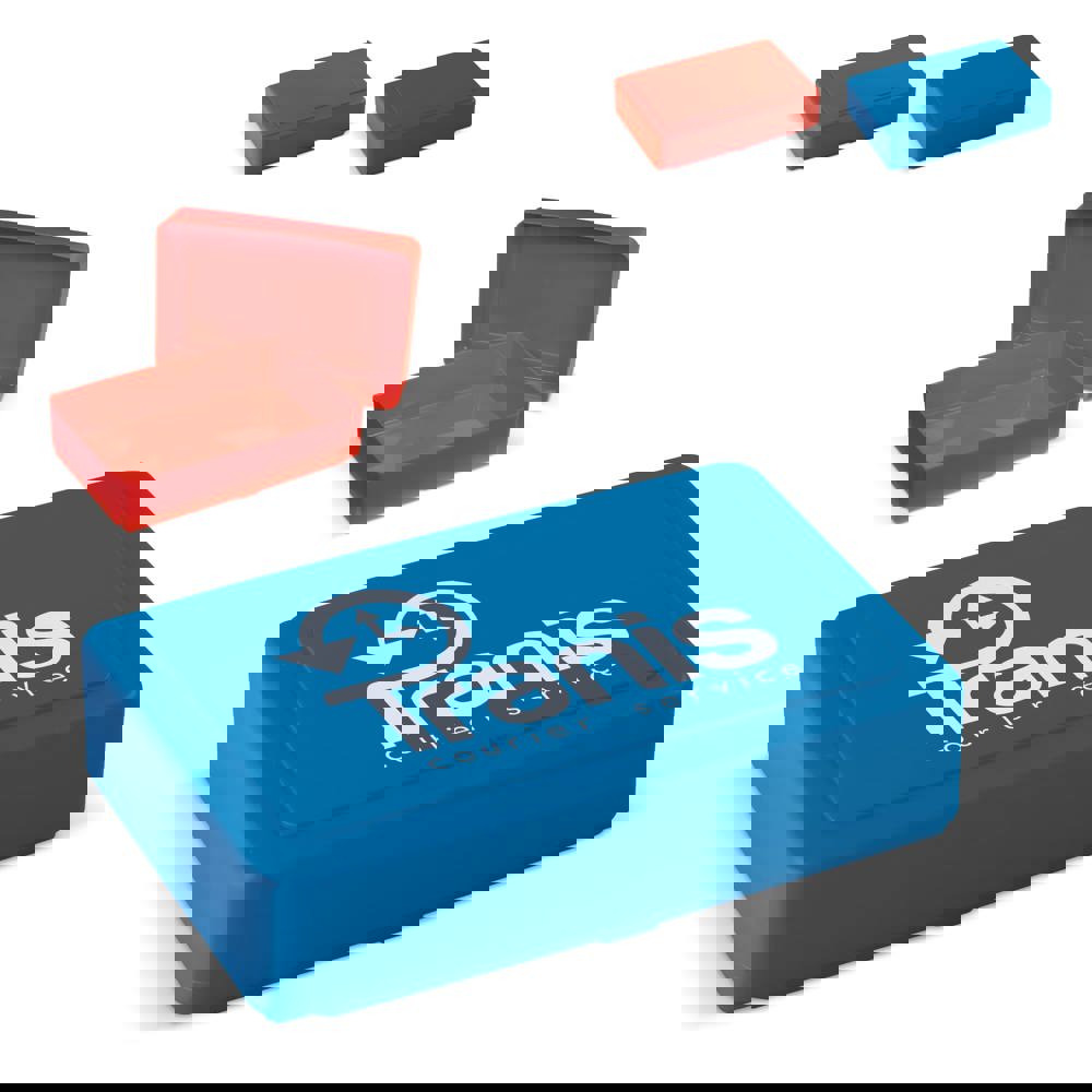 Große Brotdose. Große Druckfläche auf der Oberseite, kann vollfarbig bedruckt werden. Hält das Mittagessen frisch. Geeignet für 8 Sandwiches.