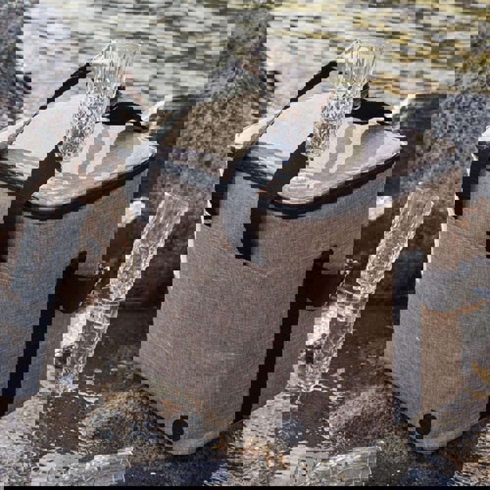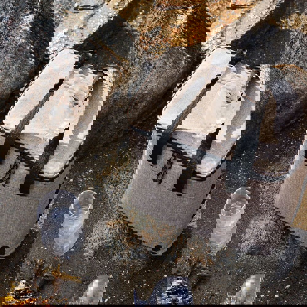 Geräumige, stilvolle und sportliche Kühltasche aus grünem rPET-Material. Schöne Details in Beige... mehr