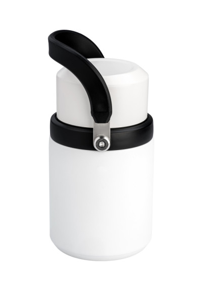 Trägt Ihr Lieblingsgericht in seinem Bauch Mit faltbarem Edelstahlgöffel im Schraubdeckel und robustem Tragebügel. Material: Edelstahl strukturiert pulverbeschichtet, PP, Silikon. Gewicht: 215 g. Maße (BxHxT): 110 x 114 x 183 mm.