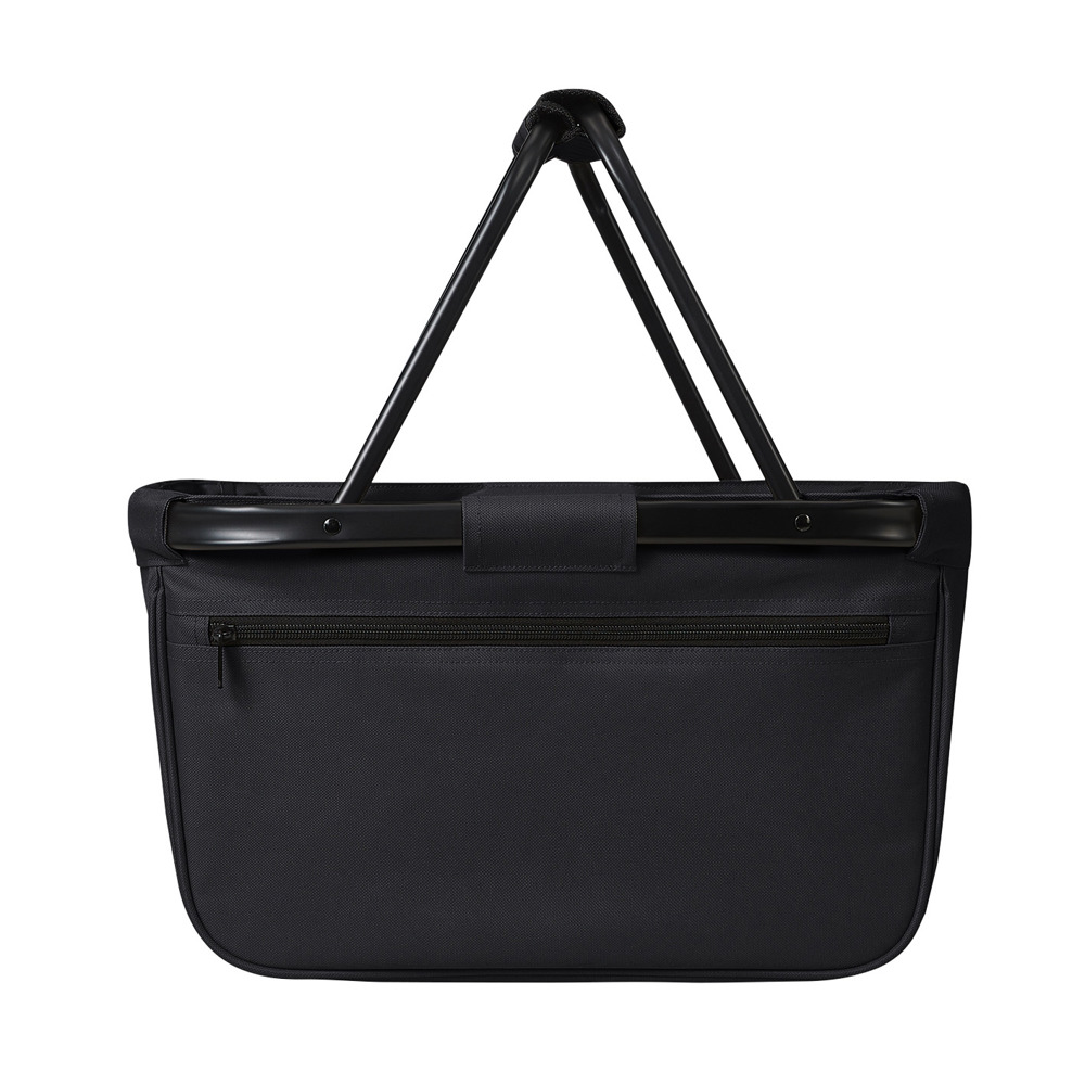 formschöner Einkaufskorb mit Alurahmen und Reißverschluss-Vortasche; faltbar