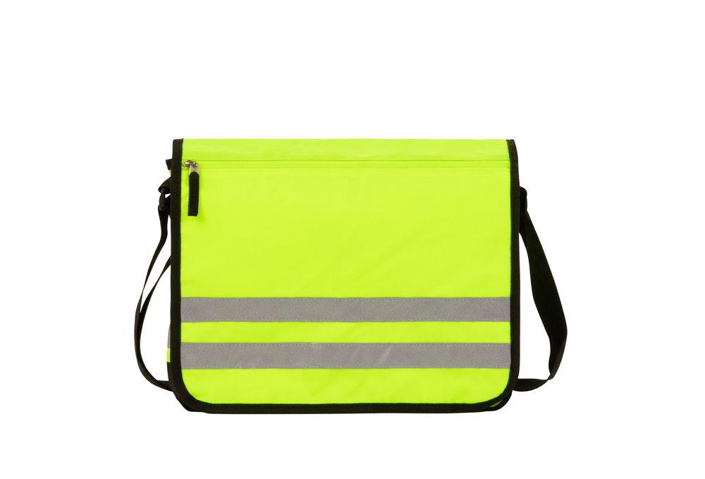 großes Hauptfach; flaches Einsteckfach mit Organizer-Elementen; Reißverschluss-Tasche auf dem Überschlag; längenverstellbarer Schultergurt mit genähtem Schulterpolster; leuchtend neongelbes Hauptmaterial mit 3M™ Scotchlite™ Reflexstreifen