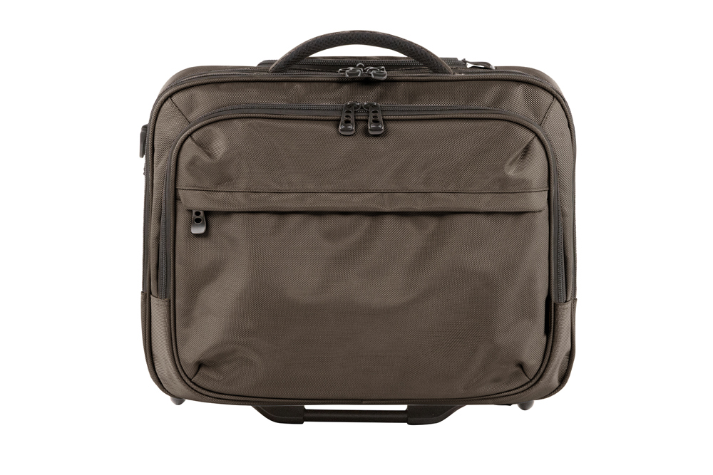 aufwändig gepolsterter Laptop-Trolley; Reißverschlussfach für Notebook; Dokumenten-Reißverschlussfach mit Separation; Reißverschluss-Vortasche mit Organizer-Elementen; Reißverschluss-Vortasche; Handgriff; abnehmbarer, zweiseitig längenverstellbarer Schultergurt mit genähtem Schulterpolster; rückseitige Befestigungsschlaufe für Gepäck-Trolley; Teleskopgriff
